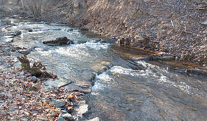 Die Pendelrampe verbessert jedoch nicht nur die Durchgängigkeit. Durch die wechselnden Strömungsverhältnisse entstehen turbulente und strömungsberuhigte Bereiche, die vielfältige Lebensräume im Gewässer schaffen. Diese Strömungsdiversität fördert die Habitatqualität und bietet Rückzugs- und Ruhezonen für zahlreiche Wasserorganismen. Gleichzeitig reduziert die pendelnde Strömungsführung den direkten Druck auf die Ufer und wirkt damit erosiven Prozessen entgegen.